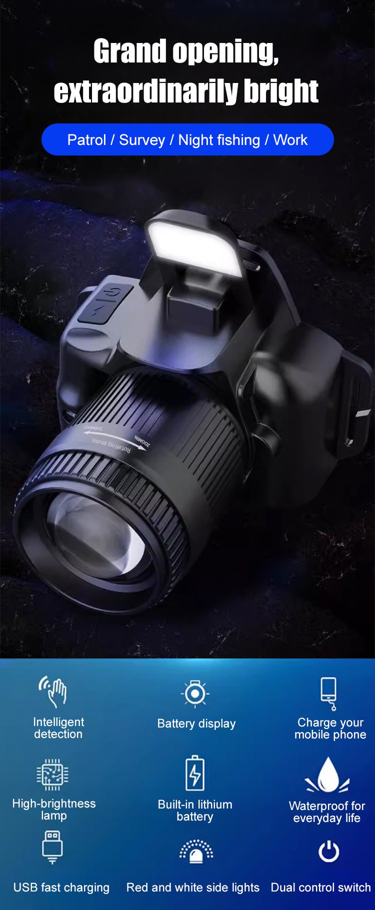 【Induction strong light】 Outdoor telescopic headlight
